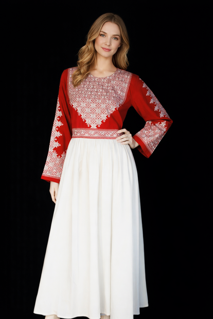 Kjolen er rikt dekorert med fargerikt håndbroderi, klassiske mønstre og dekorative mynter som gir et autentisk og eksklusivt uttrykk.Laget av kvalitetsstoff med nøye utført håndarbeid, er dette et plagg som utstråler både kulturarv og høy kvalitet. Hver detalj er gjennomarbeidet for å gi komfort, holdbarhet og et unikt design.
