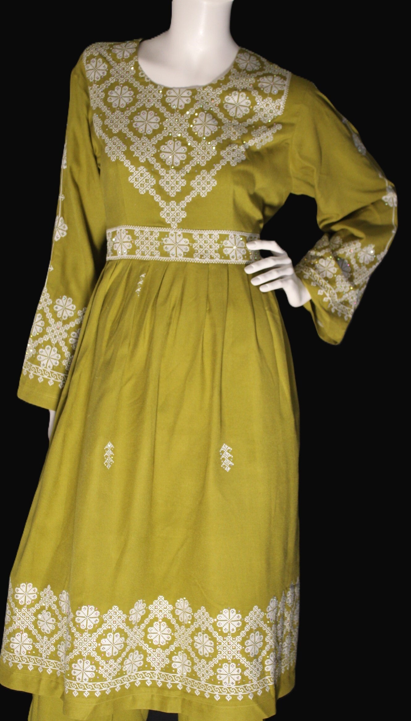 Vakker kjole med dekorativt broderi inspirert av tradisjonell afghansk stil. Mykt og behagelig stoff med flotte detaljer på bryst, ermer og kant. Perfekt til fest, høytider og spesielle anledninger.