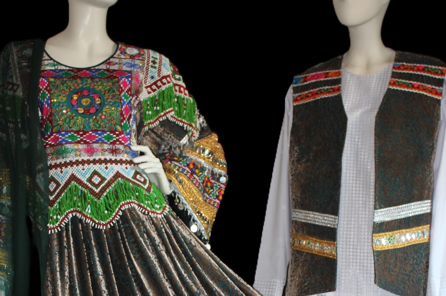 Afghansk kjole med rikt broderi og dekorative detaljer