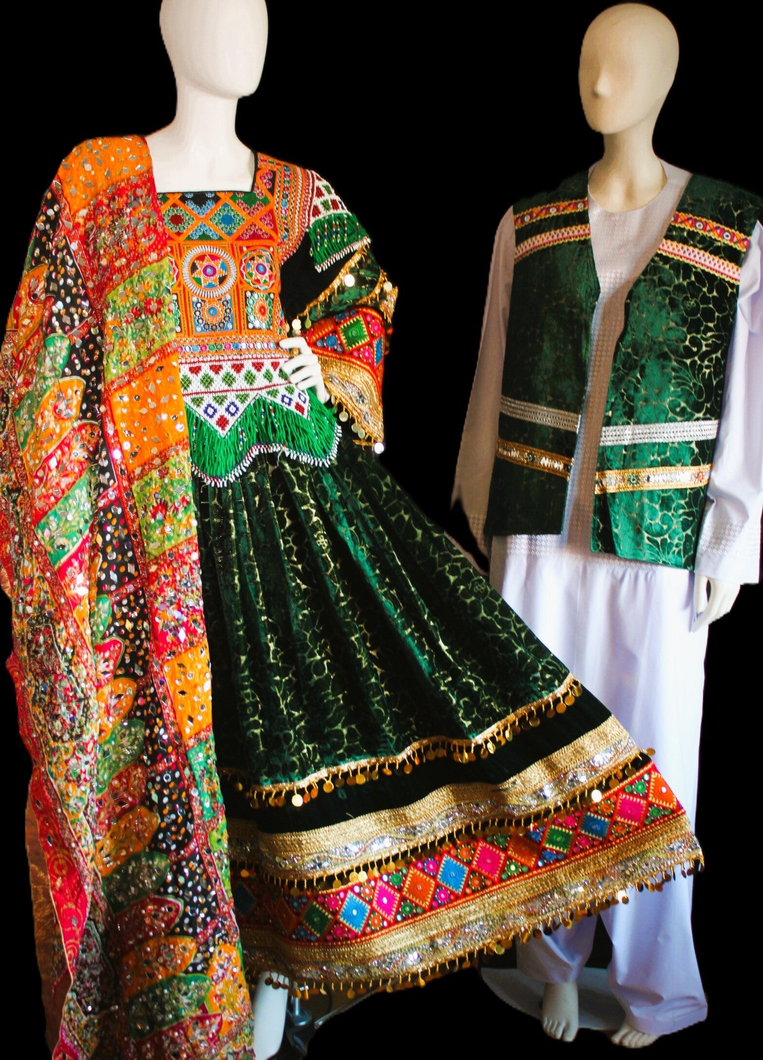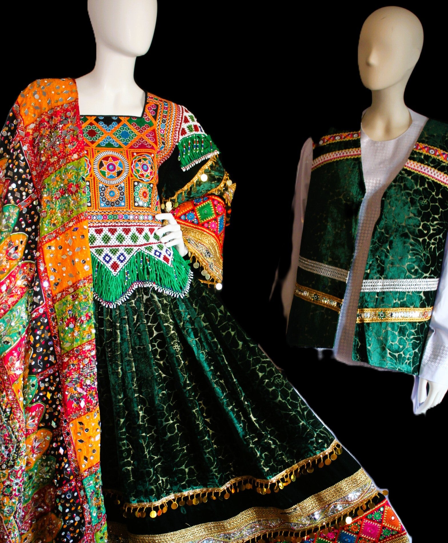 Komplett afghansk festsett – kjole, sjal og herrevest