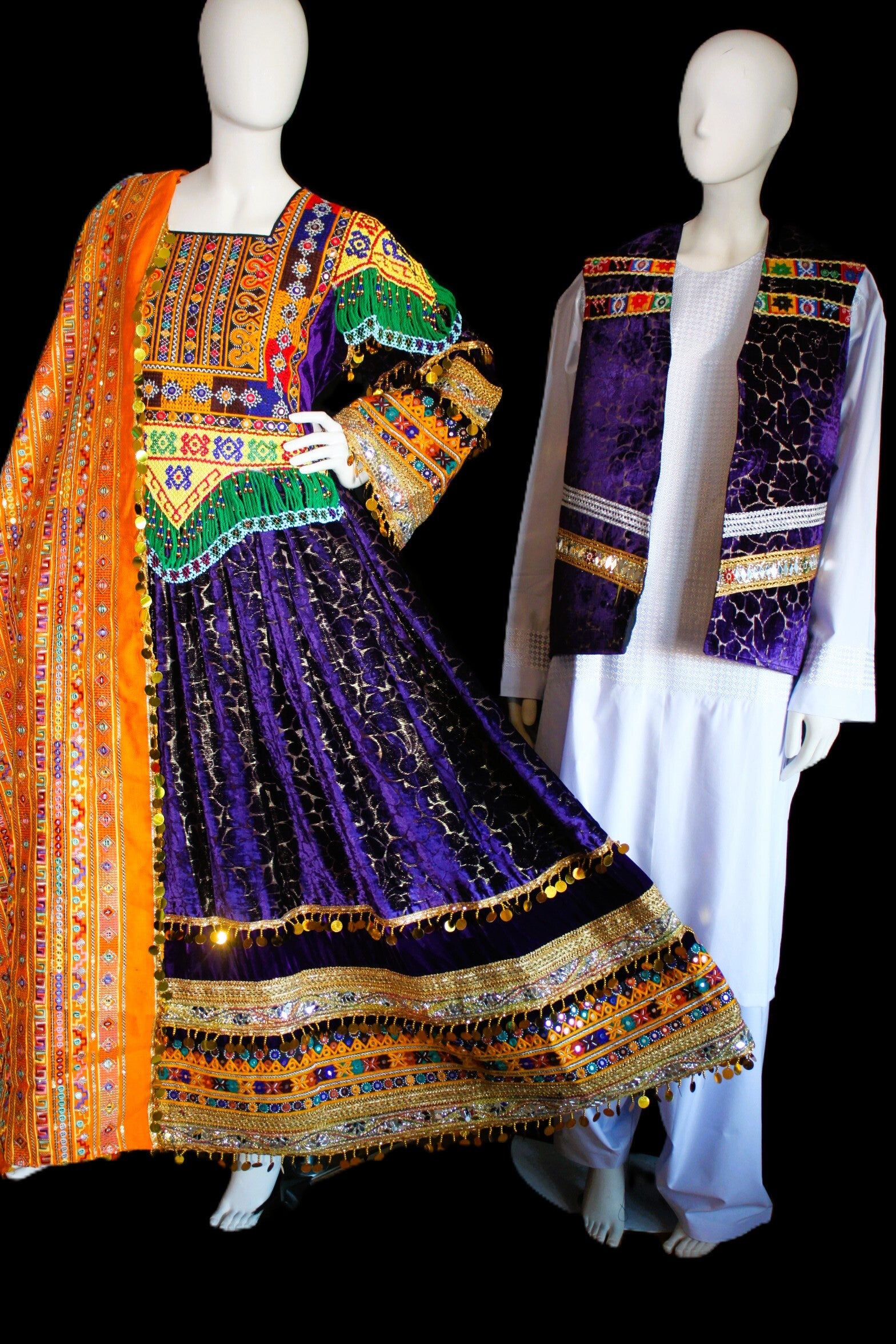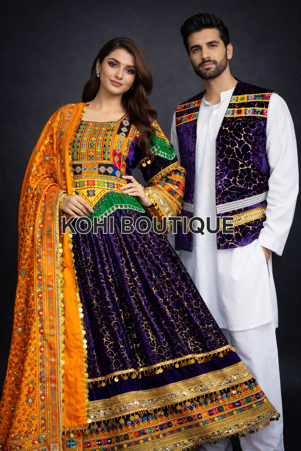 Komplett Afghansk Tradisjonelt Sett – Kjole, Sjal & Herrevest