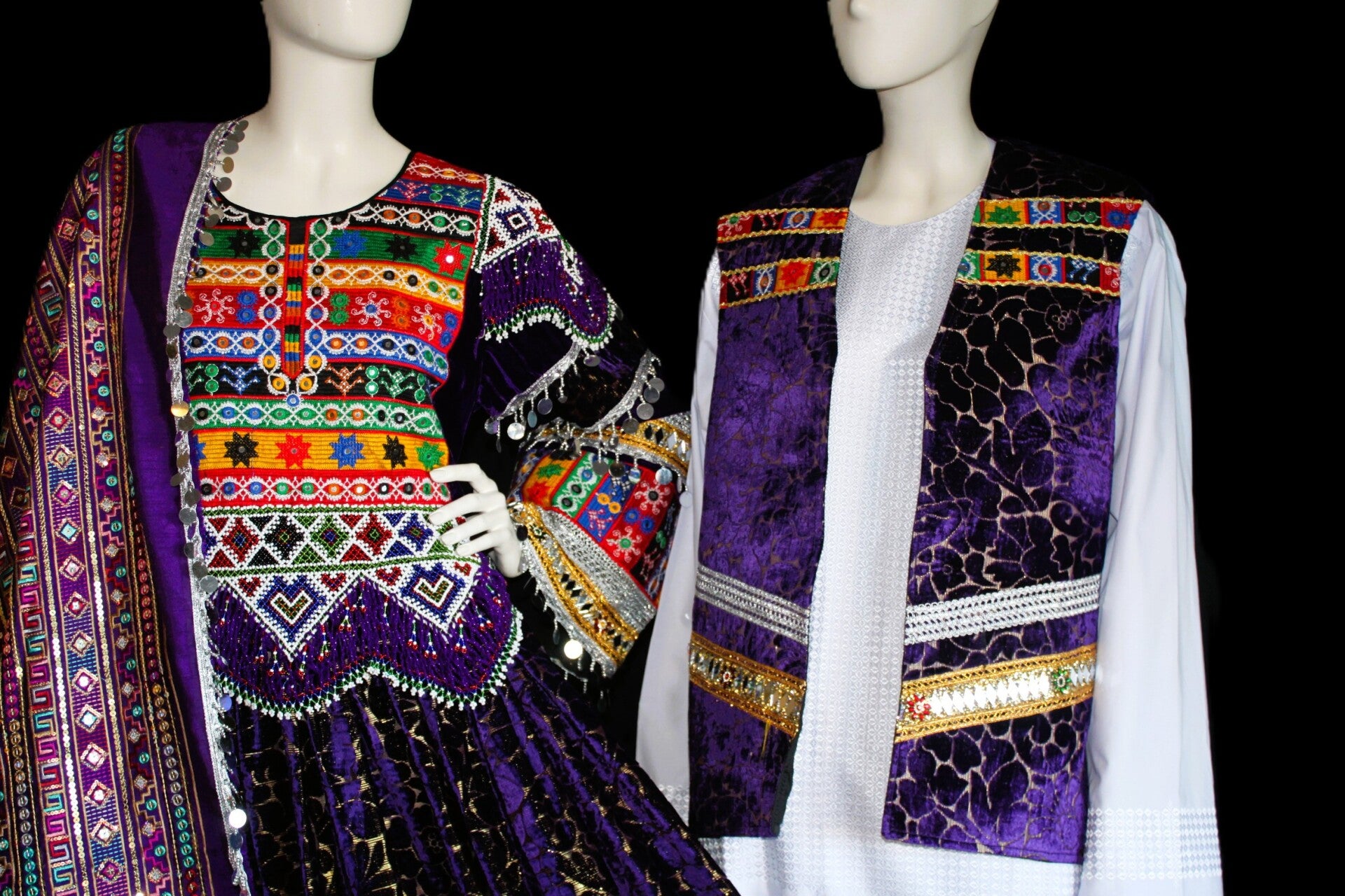 Afghansk Tradisjonelt Komplett Sett – Kjole, Sjal og Herrevest