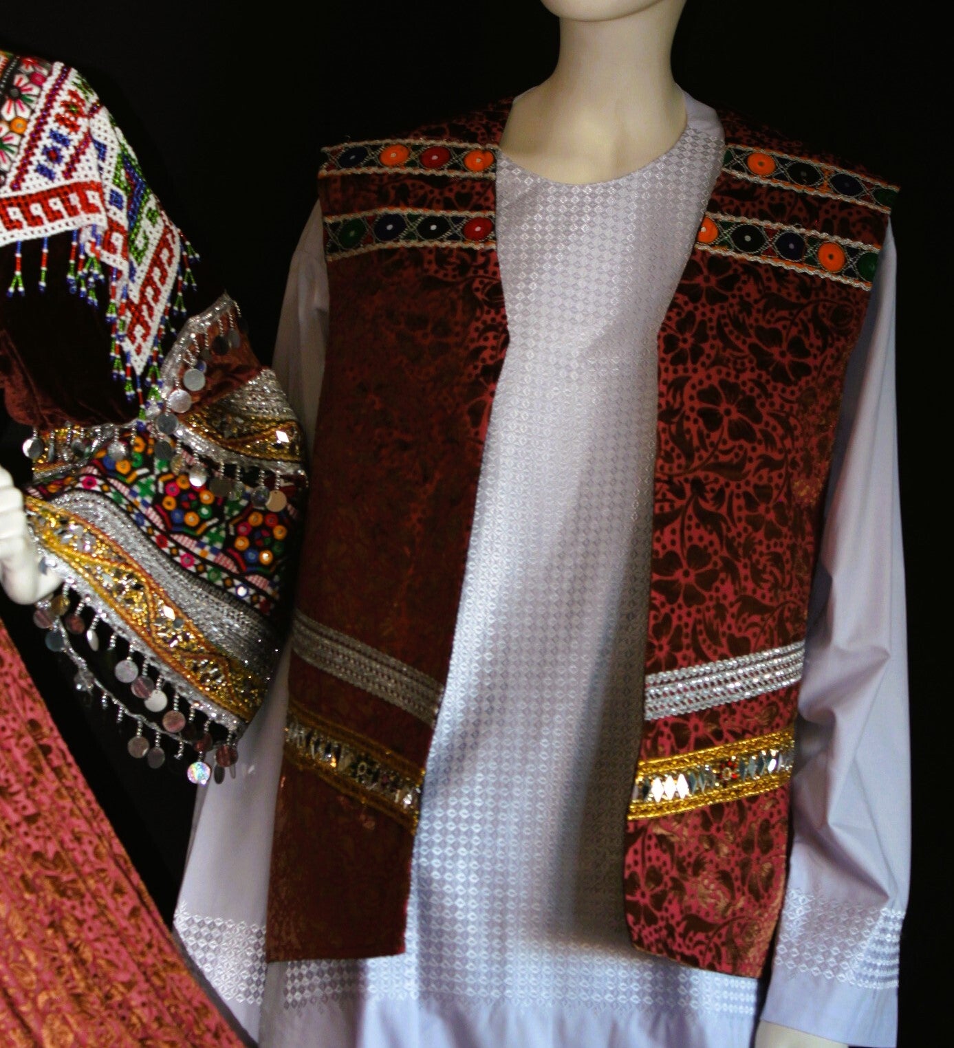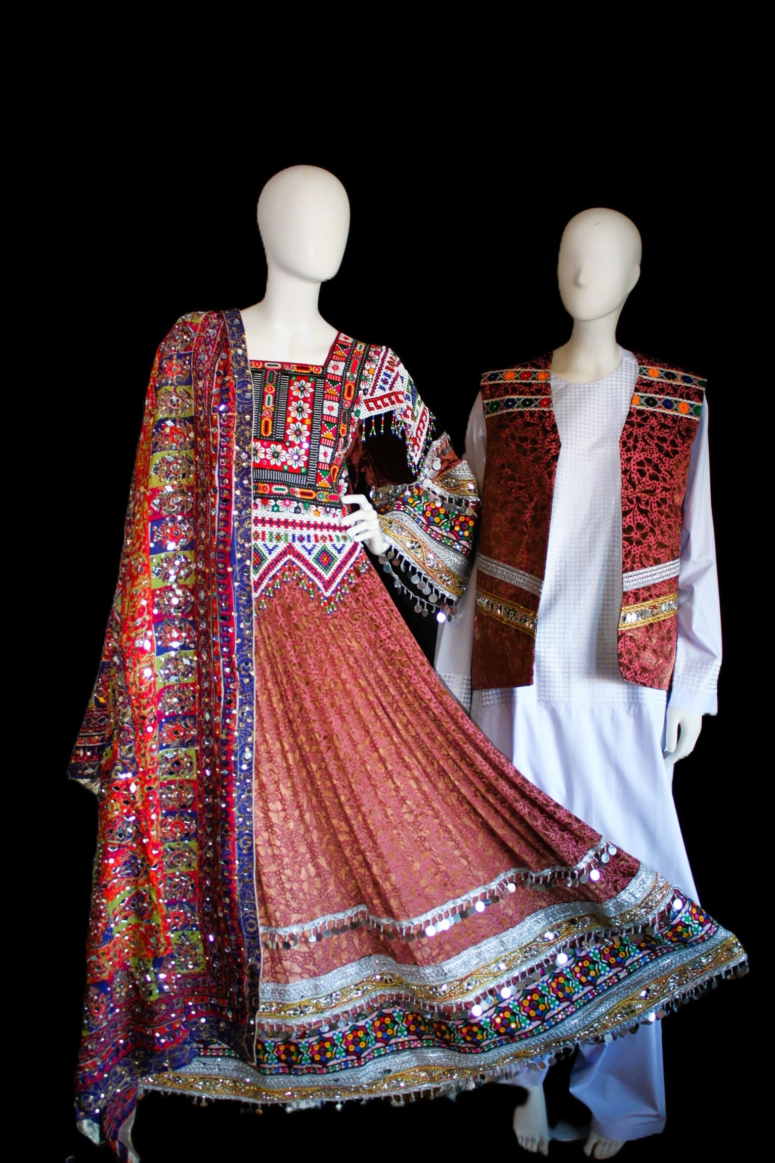 Afghansk Tradisjonelt Komplett Sett – Kjole, Sjal & Herrevest