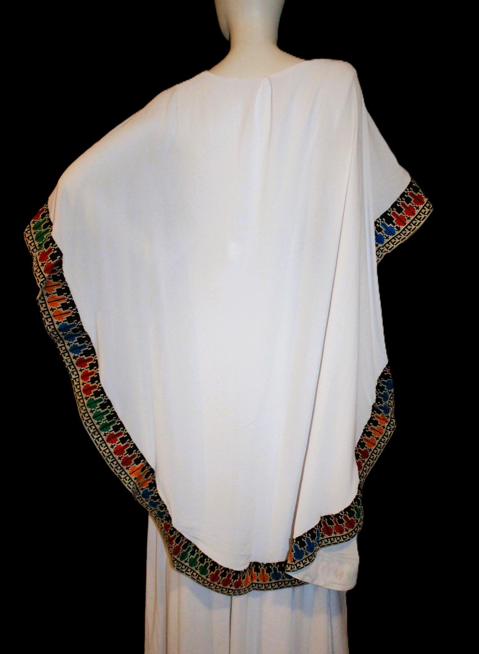 Elegant tradisjonell kjole i hvitt med håndbroderte detaljer