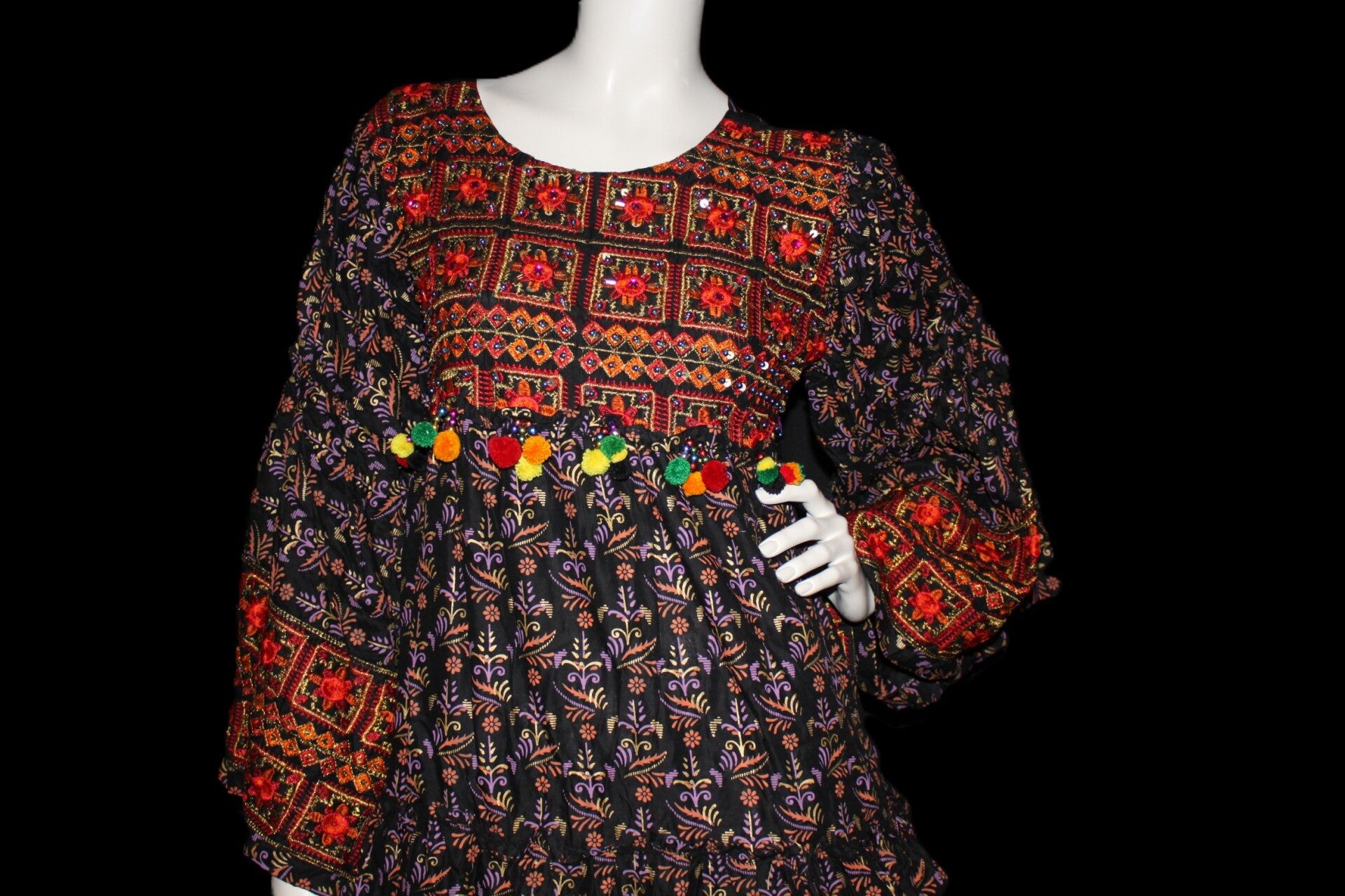 Håndbrodert overdel med etniske mønstre