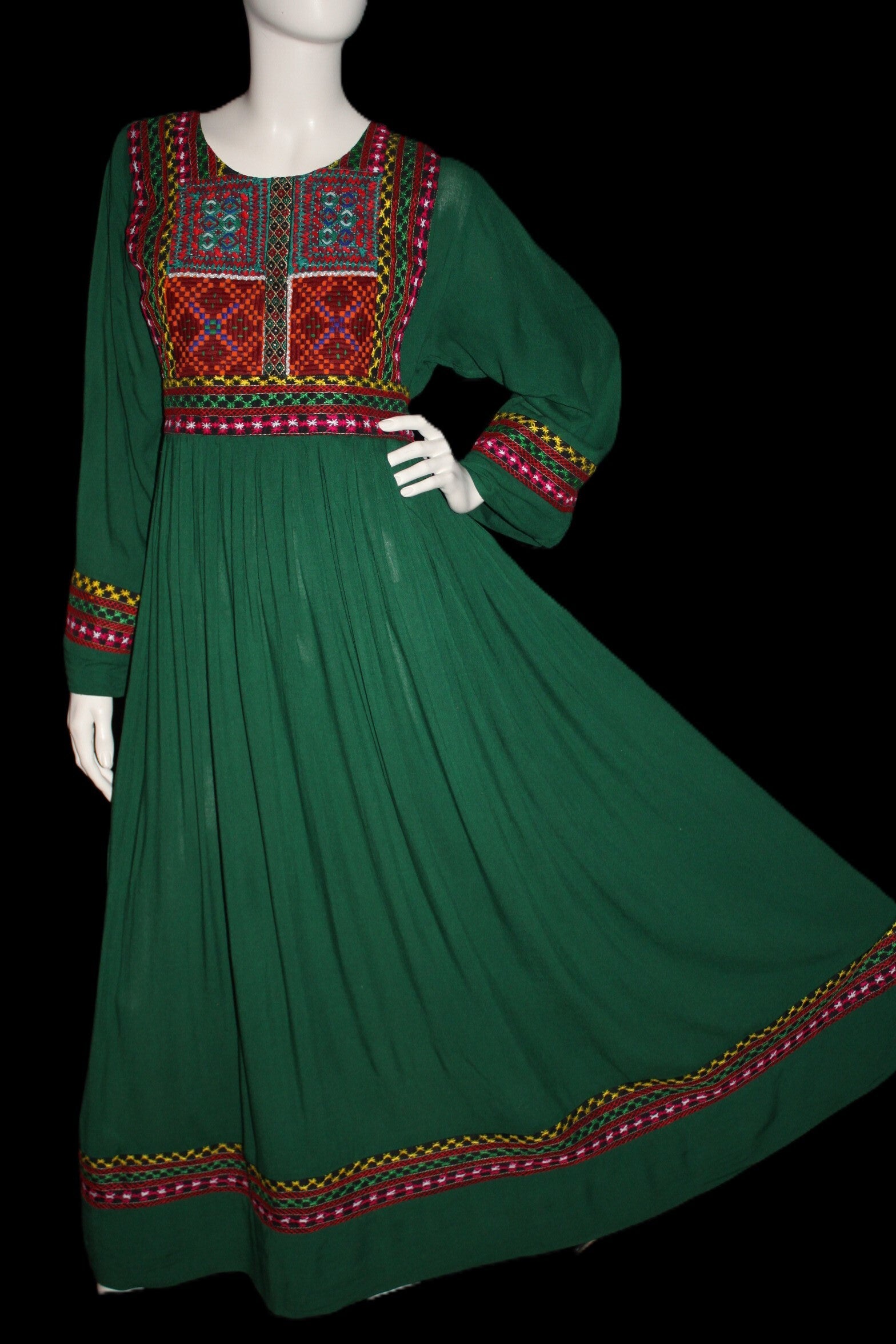 Håndbrodert front med fargerike mønstre