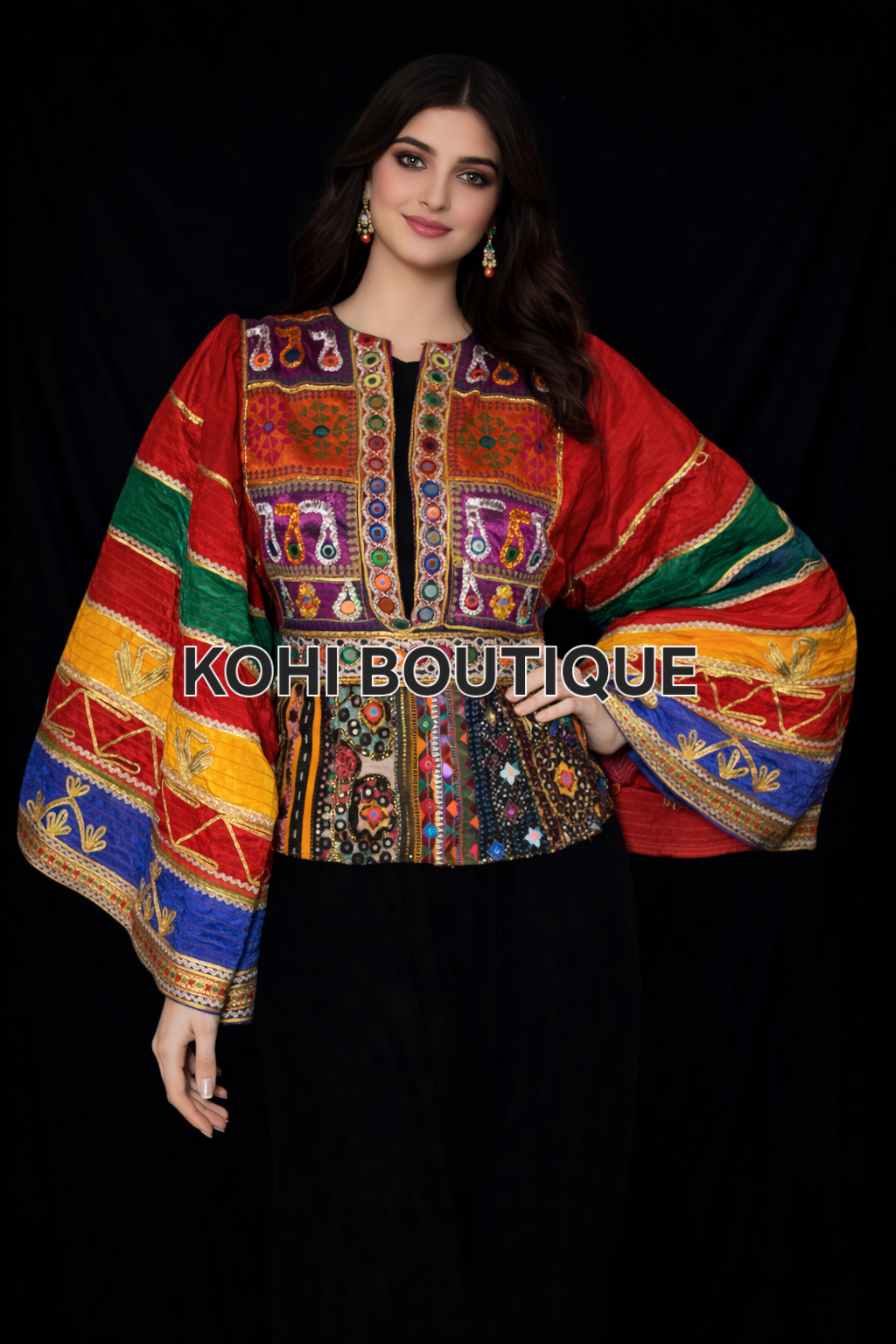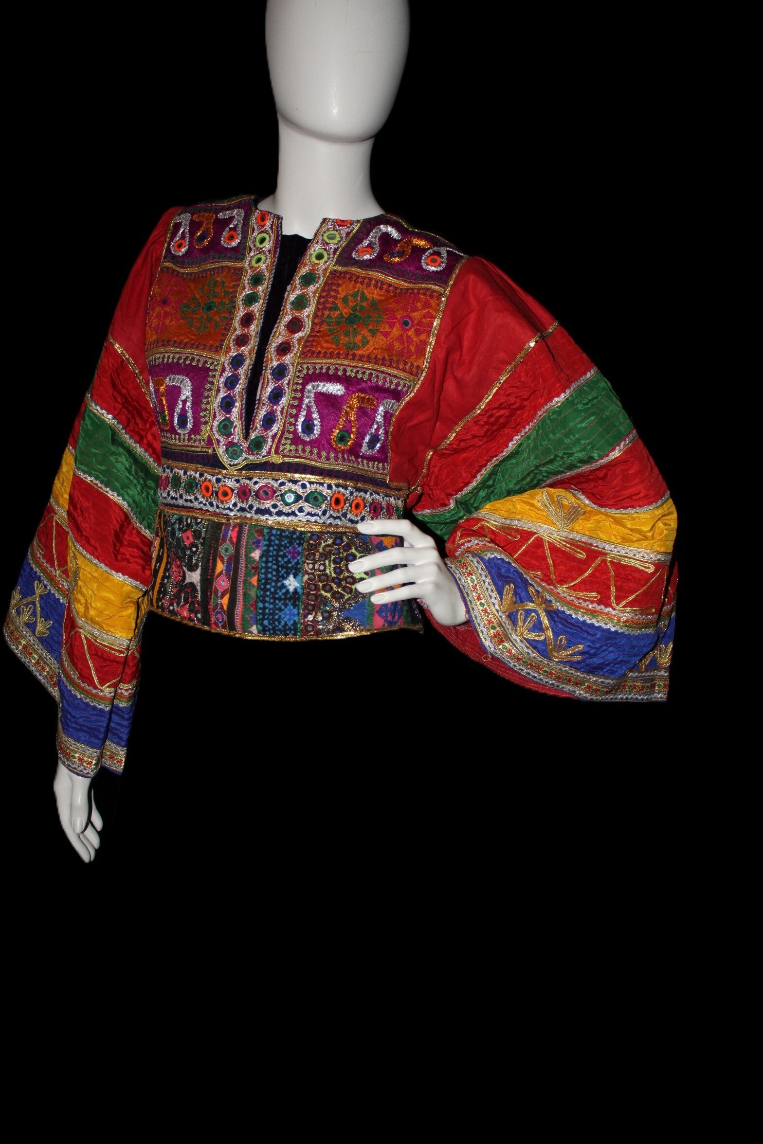 Afghansk brodert Topp med Voluminøse Ermer